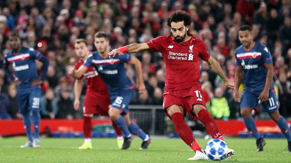Roberto Firmino continued his fine scoring record in the competition with the opener in the 20th minute before Salah took over, netting his first just before half-time and then scoring a penalty shortly after the break to make it 50 goals in just 65 Reds appearances.