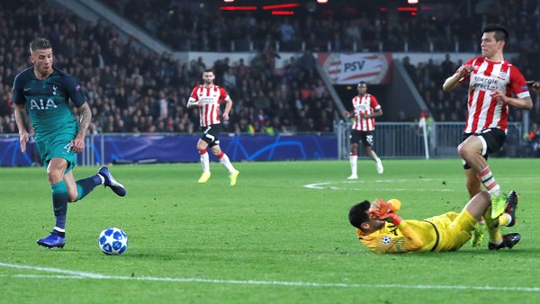 And when PSV’s opening goal arrived, shortly after Kane had clipped the crossbar, it was also of Tottenham’s making, with last man Toby Alderweireld caught in possession by Lozano.