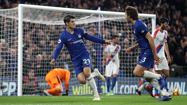 Alvaro Morata scored twice as Chelsea beat Crystal Palace 3-1 to give Maurizio Sarri a record-equaling start to Premier League management.