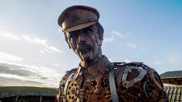 Created by Dorset-based artist and blacksmith Martin Galbavy and constructed by Chris Hannam of Dorset Forge and Fabrication, The Haunting Soldier is a six-meter high sculpture designed to evoke the fragility and suffering of those who survived World War I and returned home to an uncertain and difficult future.