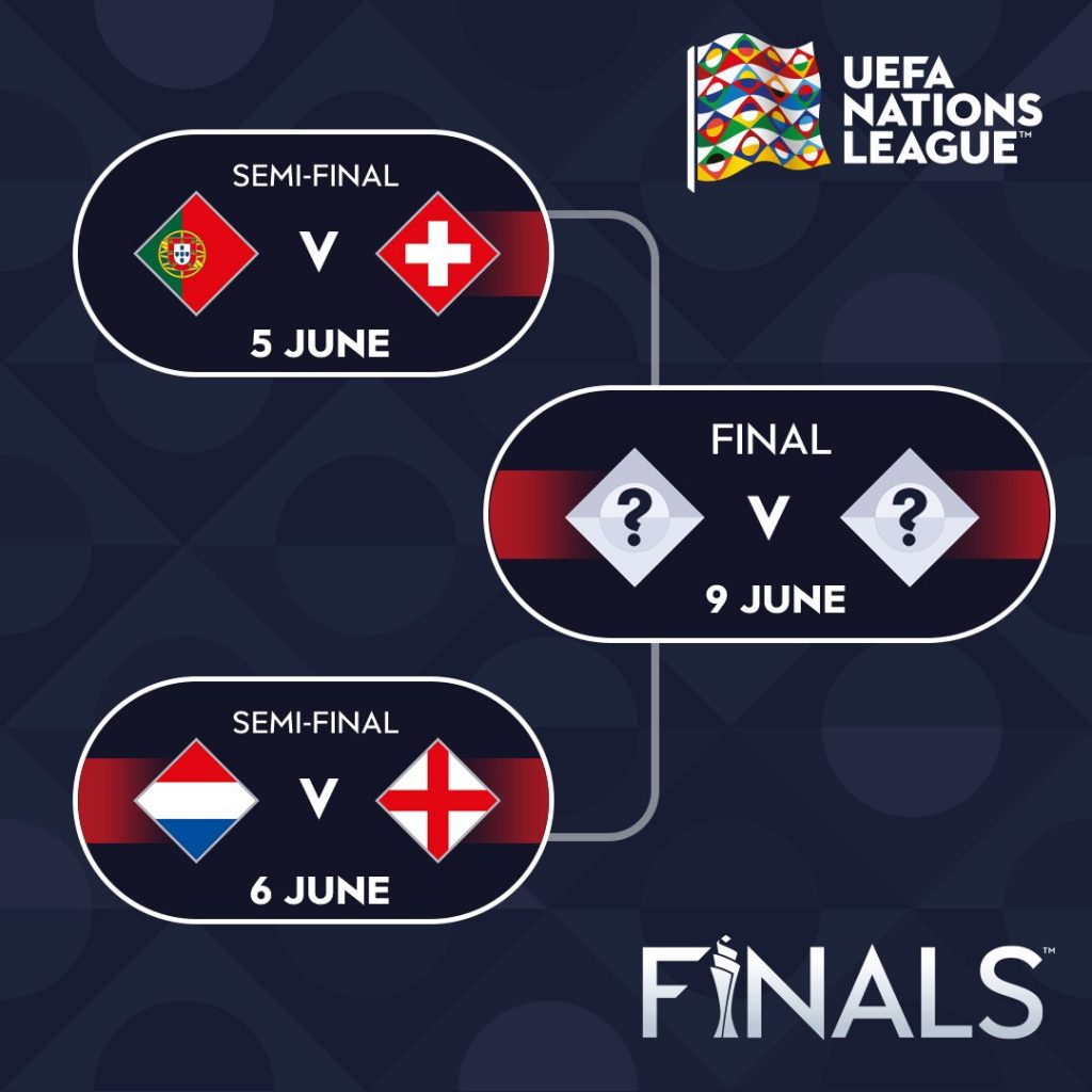 Hosts Portugal will play Switzerland in the other last-four tie on June 5 in Porto, with the final and third-place play-off taking place on June 9.