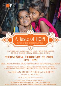 Set up in 1999 to raise funds for one girl’s home, The Hope Foundation evolved into an organization which works with some of the most disadvantaged children in the world today. In the past decade, The Foundation’s efforts have been critical in securing the rights for the underprivileged sections of Indian society, especially with the street and slum children of Kolkata (formerly Calcutta), India. Now a registered Irish charity with offices in Ireland, India, the UK, Germany and the USA, the organization is beginning to make its presence known in New York City with “The Taste of Hope,” their annual NY fund-raiser taking place this February 27th at the American Irish Historical Society (991 5th Avenue in Manhattan).