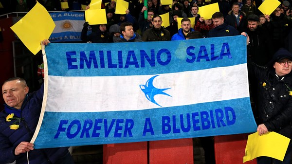 Tributes at the Emirates Stadium included a daffodil by Sala’s name on the matchday program, the Bluebirds’ mascot Daffyd wearing a shirt sporting the striker’s name and supporters’ banners.