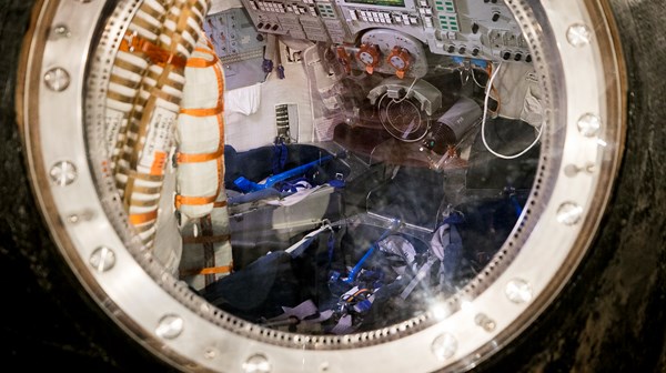 The capsule still bears char marks on its outer body from its re-entry into Earth’s atmosphere in June 2016.