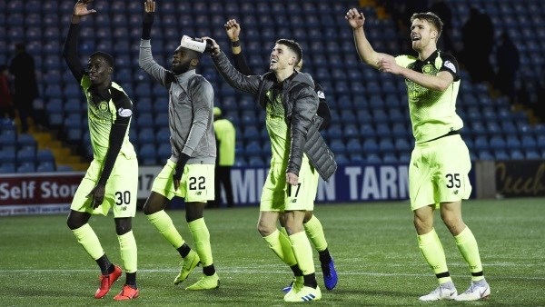 Fifteen minutes after Kilmarnock’s Kirk Broadfoot was sent off for a foul on Brown, the Hoops made the advantage count as Brown volleyed the ball into the back of the net.