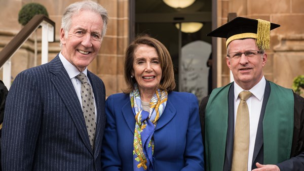 Speaker of the United States House of Representatives Nancy Pelosi watched on at the Magee campus of the university in Derry while vice chancellor Professor Paddy Nixon conferred the honorary degree.
