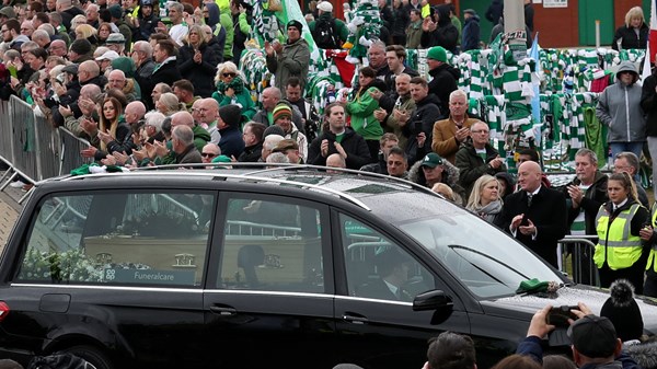 On a cold and wet afternoon, several thousand fans applauded when the funeral cortege passed through the grounds of Celtic Park before going to a private cremation. Tributes to Billy McNeill were still evident amid a tide of mostly green and white.