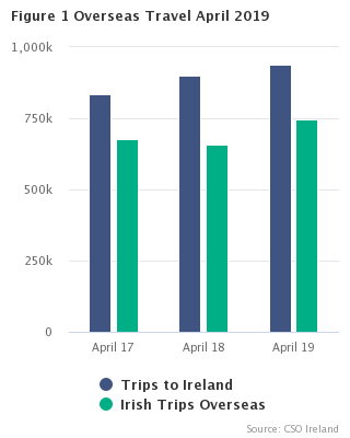In the four months to the end of April 2019, the total number of trips to Ireland increased by 5.1% when compared with the same period in 2018. Irish residents’ trips overseas during the same period increased by 9.5%.