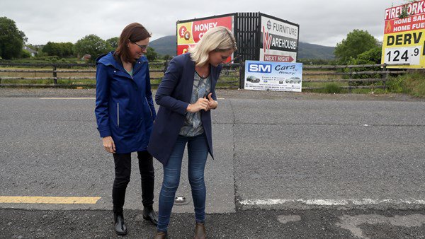 She visited the invisible frontier at Ravensdale in Co Louth, where differences in road markings are the only visible sign, as well as a local farm.