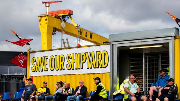 The shipbuilder, whose famous yellow cranes Samson and Goliath dominate the Belfast skyline, employed more than 30,000 people during Belfast’s industrial heyday but that workforce numbered only around 125 when the company went into administration.