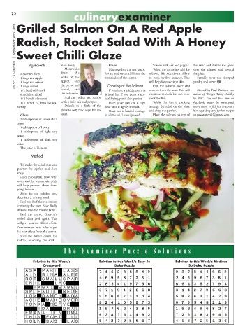 EXAMINER 2 Salmon filets Slice finely. the honey and sweet chilli and the salmon, skin side down. Allow the salad and drizzle the glaze